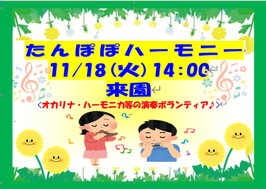 たんぽぽハーモニー来園予告R7.11.18(火)14:00~