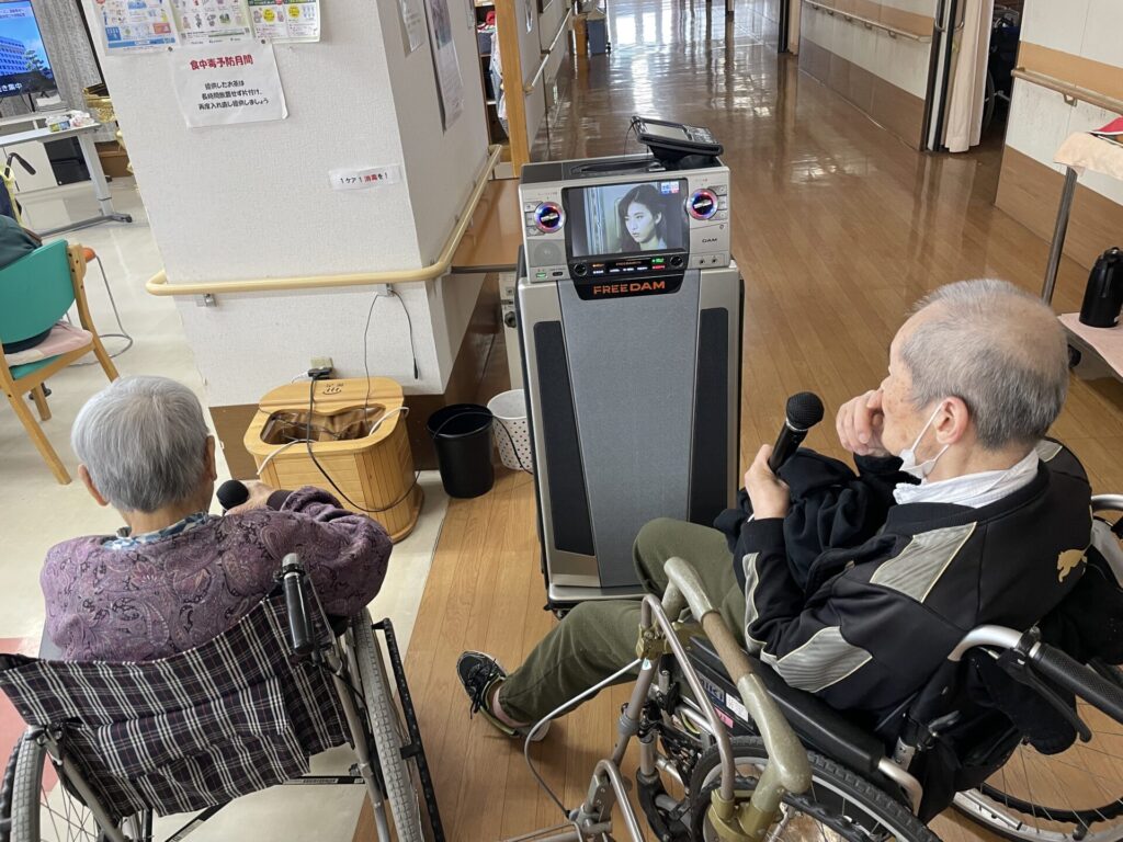 カラオケが大好きな利用者様とともに、カラオケを楽しんでいただきました^_^