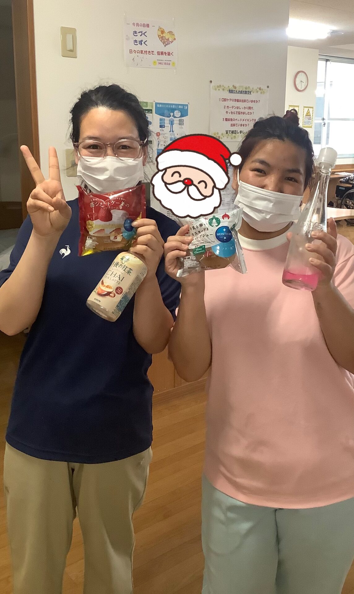 今年のクリスマスは、利用者様とともに、職員も笑顔あふれる時間を過ごさせていただきました。職員同士でシャンメリーを手に乾杯し、シュークリームを囲みながら、ささやかながら温かいクリスマスのひとときを楽しみました。
