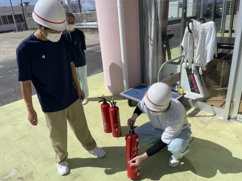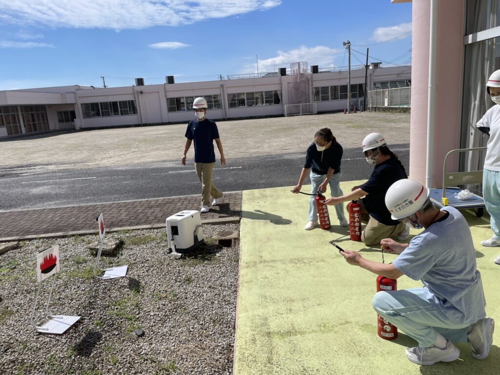 9月26日、総合消防訓練を行いました。訓練では「通報」「初期消火」「避難誘導」の一連の流れを、職員一人ひとりが役割を意識しながら確認しました。実際の災害時を想定し、落ち着いて確実に行動できるよう、動作ごとに丁寧に取り組みました。今後も、利用者様の安全を第一に考え、日頃から防災意識を高めてまいります。